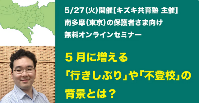 ※補足:「関西・近畿以外にお住まいの方」「5月の連休前から、お子さんが学校に行っていなかった(行き渋っていた)方」にも、参考としていただけます。少しでも気になるようでしたら、ご遠慮なくご参加ください(東海・中部版と、南多摩(東京)版も開催します)。