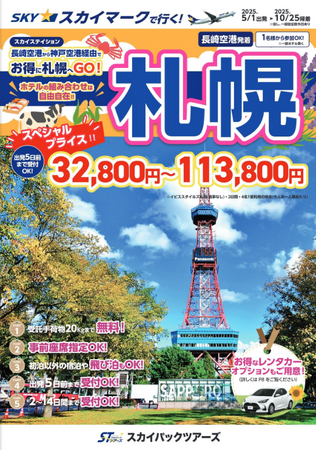 スカイパックツアーズ株式会社(本社:東京都中央区、社長:横山正巳)は、スカイマークを利用した価格固定型のパンフレット旅行商品「スカイステーション 北海道」【長崎空港発着】(2025年5月1日出発~10月25日帰着)の販売を開始します。