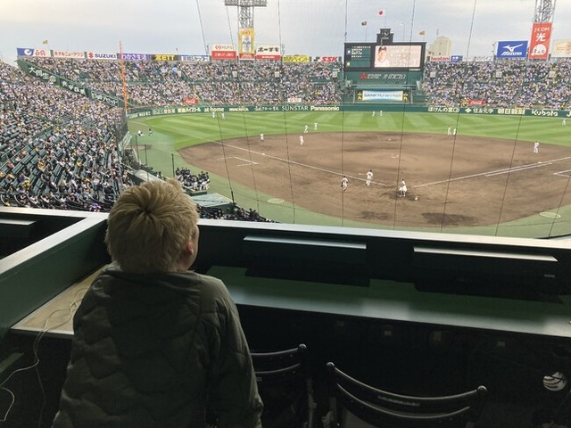 4月8日 ヤクルト戦の試合前。「こんなにいいとこで野球を見せてもらっていいんか」と大興奮のKennyDoesさん。