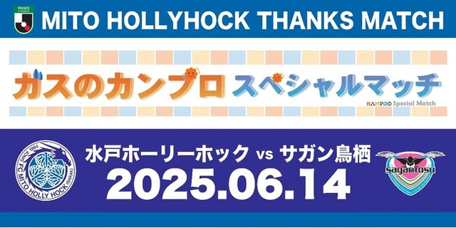 6月14日(土)に開催するホームゲーム(2025明治安田J2リーグ第19節 水戸ホーリーホックvs. サガン鳥栖)を、カンプロ株式会社にご支援いただき「ガスのカンプロスペシャルマッチ」として開催することとなりましたので、下記の通りお知らせいたします。