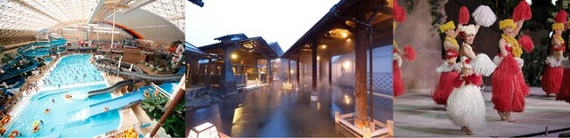 スパリゾートハワイアンズの「ウォーターパーク」、大露天風呂「江戸情話与市」、「ポリネシアンショー」