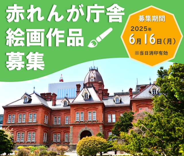 北海道庁旧本庁舎(赤れんが庁舎)のリニューアルを記念し、子どもたちの自由な発想と個性豊かな表現を通じて、赤れんが庁舎の魅力を再発見し、リニューアルへの期待感を高めるため、「赤れんが庁舎絵画作品」を募集いたします。