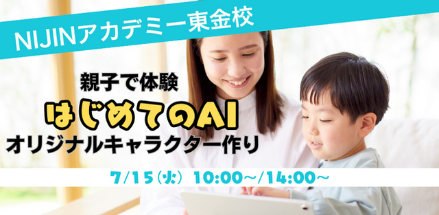 株式会社NIJIN(本社:東京都江東区、代表取締役:星野達郎)は、2025年7月15日(火)に千葉県東金市で、不登校の小中学生と保護者を対象としたAI体験イベント『はじめてのAI』第2回を開催いたします。AI技術を活用したキャラクター制作を通して、子どもたちが“学ぶ楽しさ”を実感できる新しい教育のかたちを提案します。