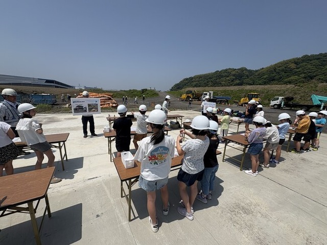 鈴与建設株式会社(本社:静岡市、代表取締役社長:櫻井重英)は、2025年5月20日(火)に静岡県清水港管理局主催で静岡市立清水興津小学校5年生約90名を対象に、新興津の埋立地における建設現場体験学習会を実施いたしました。