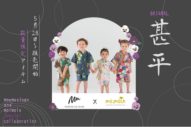日本限定 moemusisan x moimoln の特別なコラボ甚平をぜひお楽しみください。