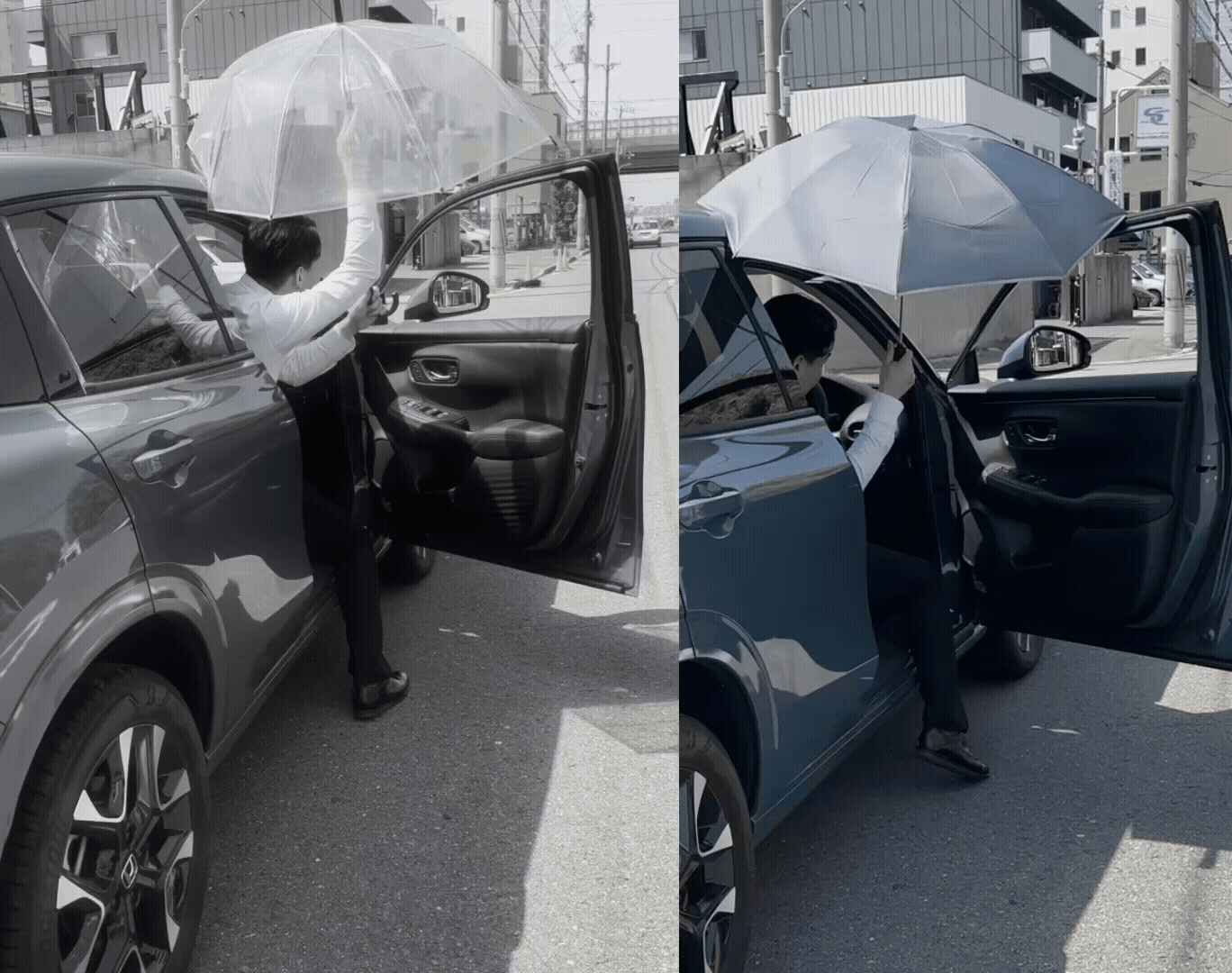 乗り込んだあとも、Sattoシリーズ共通の“形状記憶フィルム”で一瞬できれいに畳めるため、ストレスフリー。傘を扱う所作までも、美しくスマートに整えます。