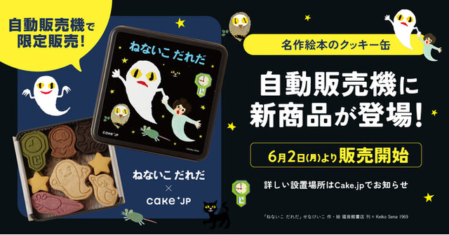 ケーキ・スイーツ専門通販サイト「Cake.jp(ケーキジェーピー)」を運営する株式会社Cake.jp(本社:東京都新宿区、代表取締役:高橋優貴)は、人気シリーズ「名作絵本のクッキー缶」が購入できる自動販売機にて、『ねないこ だれだ』の自動販売機限定デザインのコラボクッキー缶を販売いたします。
