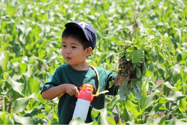 ■内容:とうもろこし畑の草取り、小松菜の収穫体験、