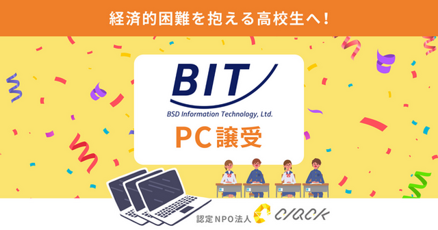 認定NPO法人CLACK(以下:CLACK)は、株式会社ビー・エス・デーインフォメーションテクノロジー(代表取締役 佐藤 洋、以下「ビー・エス・デーインフォメーションテクノロジー」)より、使用済みPC111台をご寄贈いただきました。
