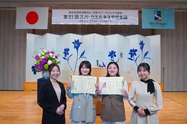 「優勝を目指し日々練習に励んできました。本番は緊張しましたが何より楽しむことができました。指導してくださった先生方、ともに努力を重ねてきたクラスメイトの存在があったからこその結果だと感じています。これからも努力を惜しまず、お客様に笑顔を届けられるエステティシャンになります!」