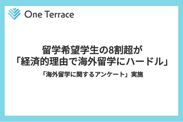 株式会社One Terrace(本社:東京都港区、代表取締役:石中達也)は、留学奨学金プラットフォームを運営する株式会社RyuLogと共同で、海外留学中または留学を希望する日本人学生331名を対象とした「海外留学に関するアンケート」を実施しました。