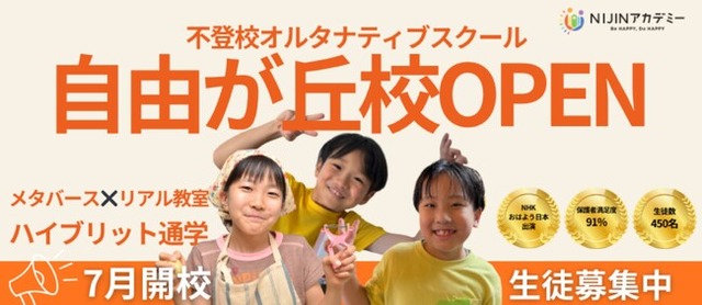 株式会社NIJIN(本社:東京都江東区、代表取締役:星野達郎)が運営する不登校オルタナティブスクール『NIJINアカデミー』はこの度、ハイブリッド通学自由が丘校を開校することをお知らせいたします。