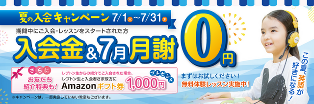 さらに、お友だち紹介特典として、レプトン生からの紹介でご入会された場合、レプトン生と入会者さま双方に“Amazonギフト券1,000円(Eメールタイプ)”をプレゼントいたします。