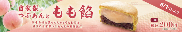 『紫あん』は、店内で丁寧に炊き上げるこだわりの自家製つぶあんを使用した甘味が楽しめる「あん専門店」です。この度、期間限定商品として、国産白桃の「もも餡」と自家製つぶあんを組み合わせた大判焼を販売いたします。国産の白桃を原材料とした“もも餡”は、白桃本来のまろやかな甘さと芳醇な香りが特徴で、『紫あん』の甘さ控えめのつぶあんと相性も抜群です。ほっと一息つきたい時のおやつやちょっとした小腹満たしとしてだけではなく、親しい方への手土産にも最適な一品となっております。