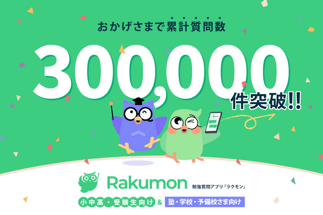 ラクモンは、皆さまのご愛顧のおかげで累計質問数30万件突破の大きな節目を迎えました。個人でご利用の方はもちろん、塾・学校・予備校などの教育機関にも幅広く導入いただき、日々の学習や受験対策で生じる“わからない”を瞬時に解決するサービスとしてご活用いただいております。スマホで問題を撮影してチャットに送るだけで、難関大学合格者や指導経験豊富な講師、プロ家庭教師が丁寧に解説。生徒様の“疑問”を瞬時に“解決”へと導きます。