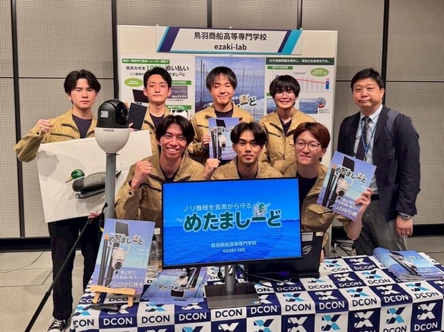 DCON2025本選を終え、鳥羽商船高専ezaki-labのリーダーを務めた情報機械システム工学科5年生北仲一登さんは、「プロジェクト開始以来、ノリの生産者の方々や漁協・水産研究所の方々とのヒアリング・現場視察を何度も重ね、現場では私たちが考える以上に深刻な問題を抱えていることが明らかとなってきて、『私たちが何とかしなければいけない』という思いが強まりました。今回の結果も、これまでご協力いただいた皆さんのお力添えがあったからこそだと感じています。ご協力いただきました皆さん、本当にありがとうございました」と話しました。今後、「めたましーど」の実証実験を積み重ね、社会実装に向けた取り組みにステップアップしていく予定で、まずは今秋に始まる海苔養殖シーズンに向けてシステムや機器をさらにブラッシュアップさせながら準備を進めていきます。