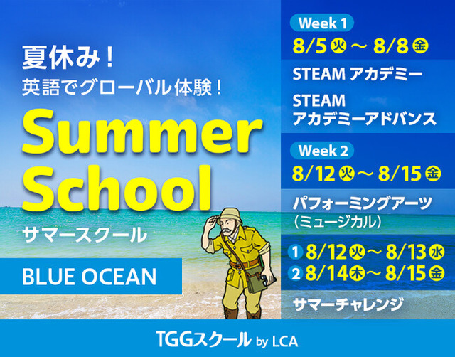 株式会社 学研ホールディングス(東京・品川/代表取締役社長:宮原博昭)のグループ会社、株式会社 TOKYO GLOBAL GATEWAY(東京・江東/代表取締役社長:圡坂恭司、以下TGG)は、2025年8月5日(火)より、主に小学生を対象にした~夏のシーズンスクール「Summer School」を開講します。お申し込みはTGGの予約サイトで受付中です。