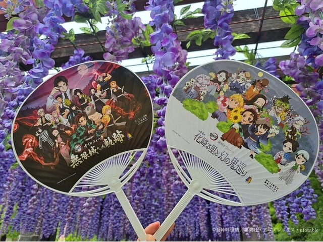 「謎解きウォーク 花降る里と幻の鬼巡り」または「ナイトウォーク 無限城への軌跡」へ来場されたお客様に、先着でニジゲンノモリ限定来場特典ノベルティをプレゼント。第3弾はイベントの2つのキービジュアルが表裏にデザインされたオリジナルうちわを数量限定で配布いたします