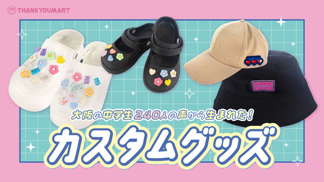 「Be Smile, Be Kawaii」をテーマに、キャラクターの限定アイテムを中心としたカワイイ推しグッズがいつ来てもALL390円で手に入るショップ「サンキューマート」は、吹田市立片山中学校(大阪府)が実施している職業体験『Hello Job Project』に参画し、片山中学校の中学生約240名の声から生まれた「カスタムグッズ」を、全国のサンキューマート店舗で6月下旬より入荷次第販売開始いたします。