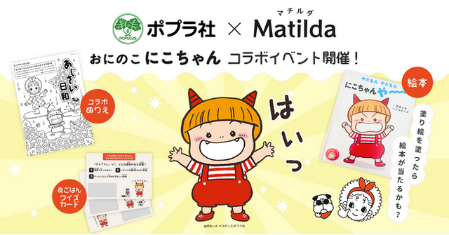 「子どもが無邪気でいられる社会を創る」をミッションに、街に溶け込む新しい中食サービス「マチルダ」(以下 マチルダ)を提供する株式会社マチルダ(本社:東京都江東区、代表取締役:丸山由佳、以下 弊社)は、絵本シリーズ「おにのこ にこちゃん」(作:ケロポンズ、絵:原あいみ/ポプラ社刊)とのコラボレーションによる初のイベントを、2025年6月9日(月)より開始しましたので、お知らせいたします。