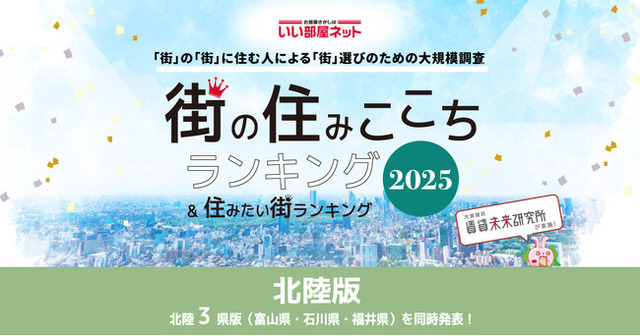 ※新聞・雑誌、テレビ・ラジオ等の報道関係者におかれましては、本リリースを掲載・報道または引用する場合には、「いい部屋ネット 街の住みここち&住みたい街ランキング2025<石川県版>」と出所の表記をお願いします。