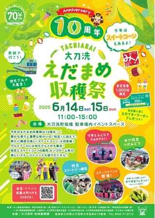 6月14日・15日に今年で10周年をむかえる「大刀洗えだまめ収穫祭」を開催します。