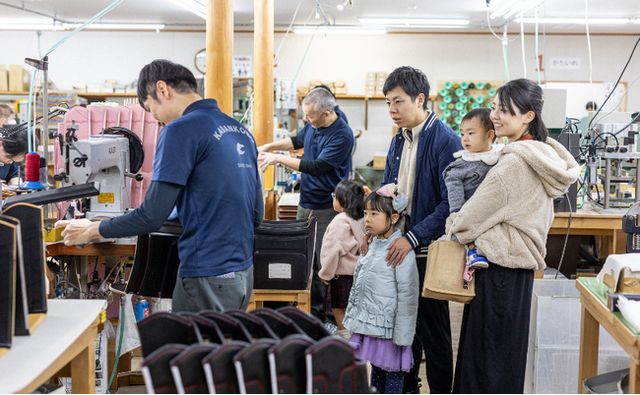 鞄工房山本では、社会科見学などものづくりを伝える取り組みも行っています。