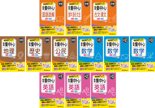 『中学 短期集中トレ』(国語読解/漢字・語句・文法/古文・漢文/地理/歴史/公民/数学/英語 ※数学、英語は中1・2・3あり)