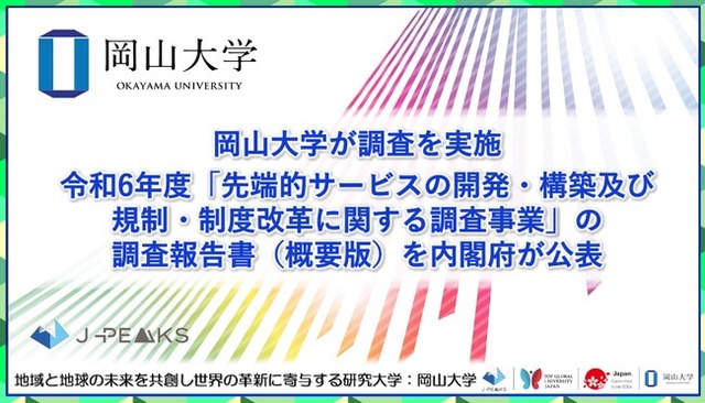 岡山大学は同報告書を踏まえ、規制改革の推進や自治体間データ連携の強化を図り、臨床研究中核病院・橋渡し研究支援機関として最先端サービスの社会実装をさらに加速していきます。
