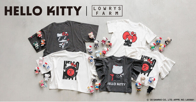 LOWRYS FARMは、子どもから大人まで幅広い世代から熱い支持を集めている「ハローキティ」とのコラボレーションアイテムを新たに販売いたします。今回は、「ハローキティ」の可愛いらしい世界観に“ロック”なテイストを加え、LOWRYS FARMらしい遊び心溢れるオリジナルアートデザインを施しています。Tシャツ4型と、種類豊富なトイキ―ホルダー1型・27種類の展開です。