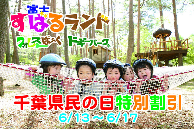 富士観光開発株式会社(本社:山梨県南都留郡、代表取締役社長:志村和也)が運営する、自然に囲まれたファミリー向けテーマパーク「富士すばるランド」では、6月15日の「千葉県民の日」を記念し、6月13日(金)~6月17日(火)の5日間、千葉県民の方限定で「入園料(お一人様2,000円)」または、入園料とアトラクション乗り放題券がセットになった「ワンデーパスポート(通常価格:大人3,700円、子供3,100円)」を特別価格お一人様300円割引で販売いたします。