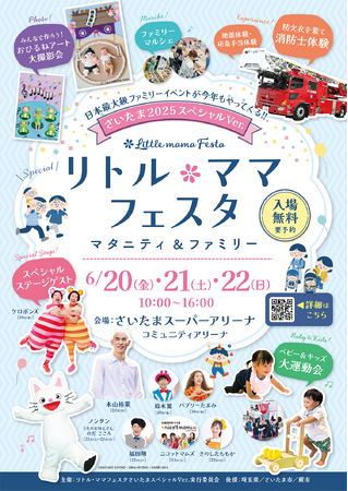 「リトル・ママフェスタ さいたま2025スペシャルver」では、思わず笑顔になる親子参加型コンテンツが目白押し!詳細・ご予約はイベント公式ページよりご確認ください。<コンテンツの一部をご紹介>[画像2: https://prcdn.freetls.fastly.net/release_image/18471/39/18471-39-9e77efa25e79044f10f170f0d53536d7-1200x800.png?width=536&quality=85%2C75&format=jpeg&auto=webp&fit=bounds&bg-color=fff ]