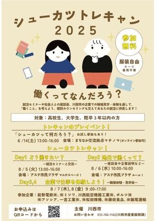 兵庫県川西市では、高校・大学生や既卒者の就活をサポートするため、令和7年6月14日にプレイベントを開催し、同年8月5日~8日に「シューカツトレキャン2025」を開催します。