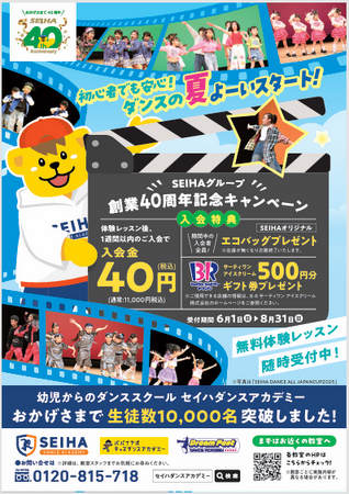 株式会社セイハダンスアカデミー(福岡県福岡市,代表取締役:坂口 正美,以下セイハダンスアカデミー)は、2025年6月1日(日)より「夏のキャンペーン」を実施中です。特典満載の今!この機会にダンスを始めてみませんか?