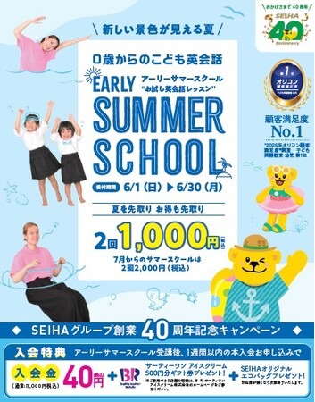 セイハネットワーク株式会社(福岡県福岡市,代表取締役:坂口 正美,以下セイハネットワーク)は、夏のキャンペーン「アーリーサマースクール」“お試し英会話レッスン”を6月1日(日)よりスタートいたしました。