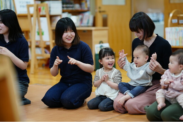 お子様をおひざに抱っこしながら、わらべうたを楽しみましょう。