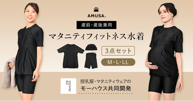 1956年創業の老舗水着メーカー直営の東京発水着ブランドAMUSA(R)(株式会社F-THAMY、東京都台東区、代表取締役 福田武)は、授乳服・授乳ブラのパイオニアMO HOUSE(R)(有限会社モーハウス、茨城県つくば市、代表取締役 光畑由佳)の全面的な監修を受けて新規開発した「産前産後フィットネス水着3点セット(トップス、ボトムス、キャップ)」を、2025年6月20日金曜日よりECサイト等を通じて新発売させていただくこととなりました。