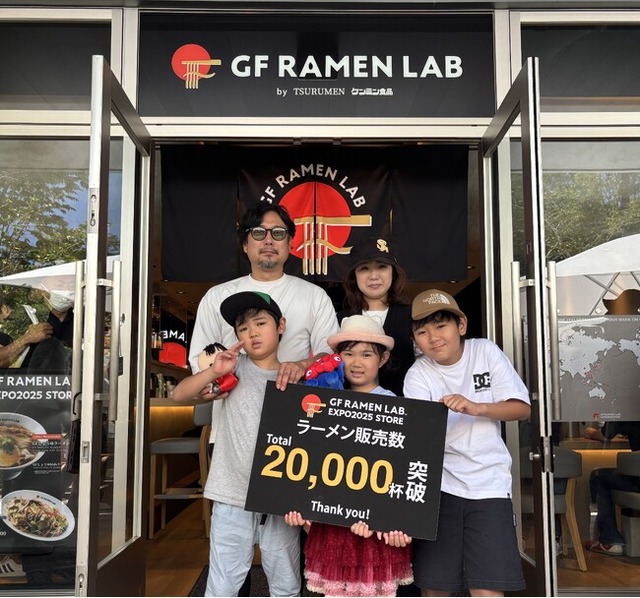 大阪・関西万博で出店している「GF RAMEN LAB大阪・関西万博店」においてグルテンフリーラーメンメニュー(6種類)を展開しています。その販売数が6月17日で累計2万杯を突破しました。記念すべき2万杯目に該当したのは地元大阪から来られた長田さまご一家でした。「このラーメンをきっかけに初めてグルテンフリーを知りました。子供も『おいしい!』と満足して完食しました」とのお言葉をいただきました。