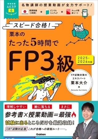 株式会社 学研ホールディングス(東京・品川/代表取締役社長:宮原博昭)のグループ会社、株式会社 Gakken(東京・品川/代表取締役社長:南條達也)は、2025年6月19日(木)に資格試験ムビスタ『栗本のたった5時間でFP3級 2025-2026年版』を発売いたしました。