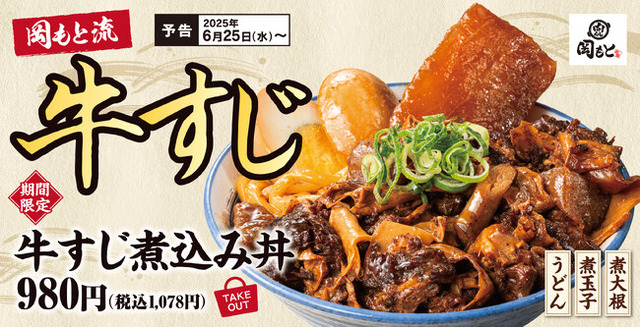 カツ丼でも牛丼でも親子丼でもない。新しい肉丼、肉めし専門店「肉めし岡もと」にて、期間限定メニュー「牛すじ煮込み丼」と「牛すじ煮込み定食」を2025年6月25日(水)より販売開始いたします。
