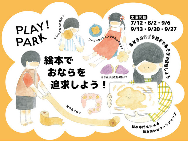 未知との出会いがコンセプト、子どもが自由な発想で遊べる屋内キッズパーク「PLAY! PARK」の企画・運営を行う、エイアンドビーホールディングス株式会社(本社:東京都目黒区、社長:野田 純)は、絵本に関する高い知識や、読み聞かせ技術を備えた絵本専門士に協力いただき、ユーモラスで楽しいワークショップ「絵本でおならを追求しよう!」を、2025年7~9月の指定日(計6日間)に実施します。