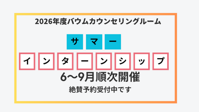 🏢 主催:NPO法人バウムカウンセリングルーム学生のうちに“本当に大切なこと”を考えるきっかけを届けたいという想いから、毎年インターン・セミナーを実施しています。