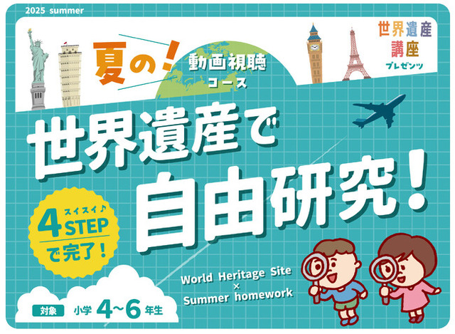 今夏は、その世界遺産講座のノウハウを生かした小学生向けの自由研究サポートコンテンツ、「世界遺産で自由研究!」をリリースいたします。本講座を通して、より多くのお子様に世界遺産に興味を持ってもらいながら、楽しく自由研究をすすめていきましょう。