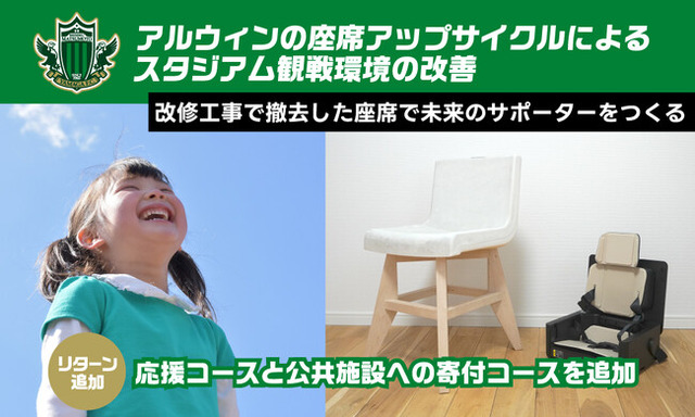 本クラウドファンディングでは、Jリーグに所属するプロサッカークラブ・松本山雅FCがホームスタジアムとして使用している「サンプロ アルウィン」の座席改修工事に伴い、廃棄される予定だった座席を譲り受け、アップサイクルした椅子を活用し、スタジアムの観戦環境の改善に繋げる取り組みです。