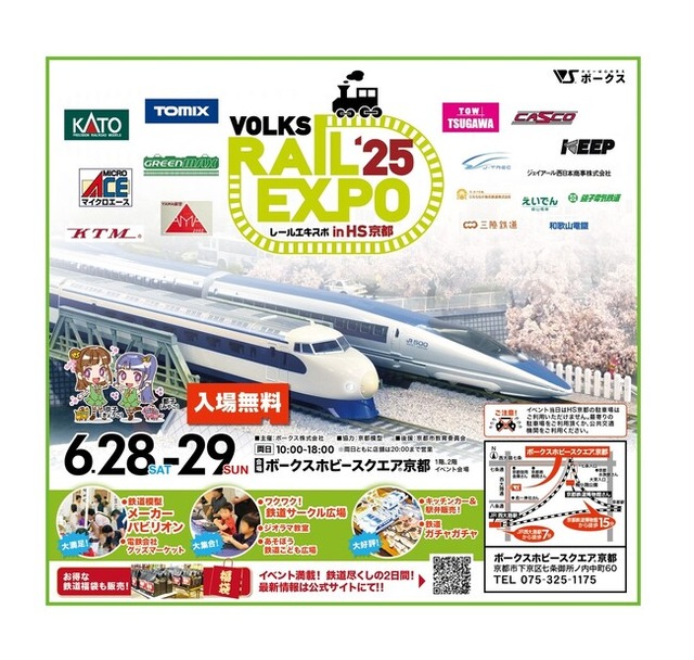 模型・玩具商品の企画、製造、小売を手掛けるボークス株式会社(京都市下京区)は、関西最大級の鉄道模型の祭典「レールエキスポ 2025 in HS京都」を6月28日(土)・29日(日)、ホビースクエア京都にて開催いたします。レールエキスポとは、鉄道を「見る!触れる!楽しむ!」をコンセプトに、熱心な鉄道ファンから親子連れまで、あらゆる方にお楽しみいただけるイベントです。全国の鉄道会社、鉄道模型メーカー計25社が出展するほか、関西を中心に活動する鉄道サークルも多数参加。限定品の物販、鉄道模型走行実演、キッチンカー&駅弁販売など、楽しいコーナーを多彩に展開いたします!