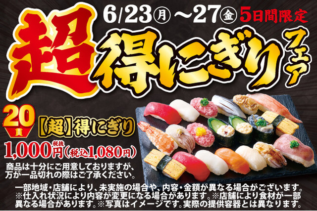 [画像2: https://prcdn.freetls.fastly.net/release_image/63326/320/63326-320-9b1d83aa6180fe93138928f324f01982-600x314.jpg?width=536&quality=85%2C75&format=jpeg&auto=webp&fit=bounds&bg-color=fff ]【超】得にぎり 20貫