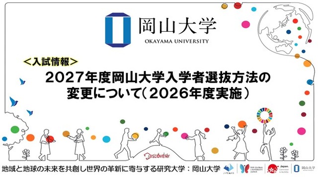 国立大学法人岡山大学(本部:岡山市北区、学長:那須保友)は、「2027年度岡山大学入学者選抜方法の変更について(2026年度実施)」について、以下の通り公開しましたので、お知らせします。