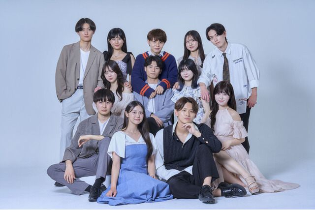 (最後列左から)町井陽大、田村はるき、長谷川湧也、岸サラ、林律希(中段左から)藤枝花帆、佐藤大翔、宮崎幸乃(最前列左から)熊部拓斗、瀧澤真依、中村滉己、紫音櫻。