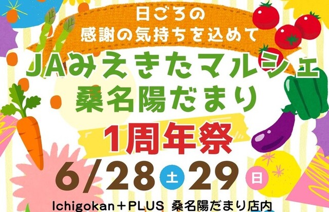 株式会社 一号舘(本社:三重県四日市市)は6/28(土),6/29(日)に、三重県桑名市に所在するIchigokan+PLUS桑名陽だまり店にて、地域を支える農産物直売所『みえきたマルシェ』の周年祭を開催いたします。