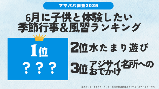 (本リリースは、「発表!ママパパの声!子供喜ぶ6月の季節行事&風習ベスト10/いこーよファミリーランキング」を一部抜粋して作成しています。全文はこちら)